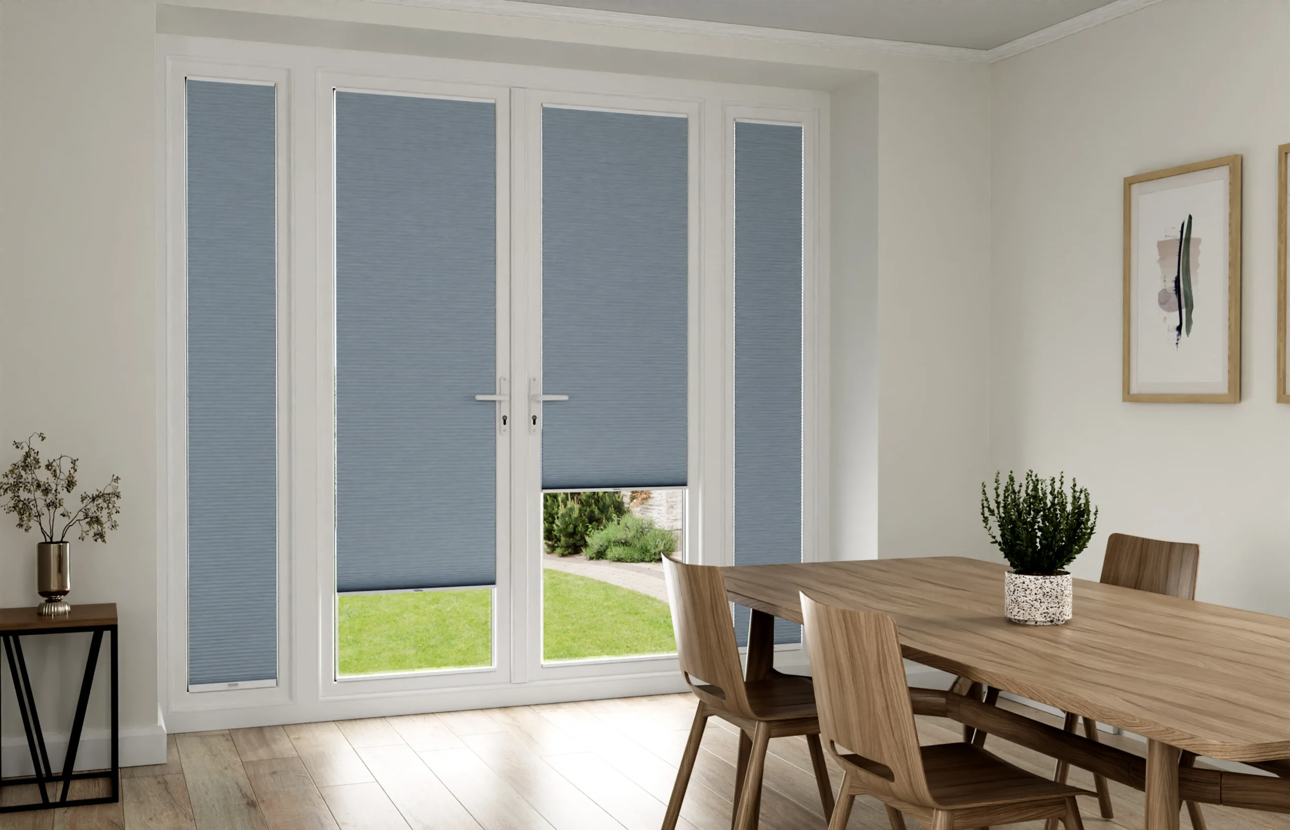 Bifolds are one of the more elaborate door designs available, and not all blinds are suitable for bifold doors. BlindsByPost stocks a variety of blind solutions that are compatible with bifold doors, including XL Motorised Blinds, Perfect Fit Blinds and Vertical Blinds. Our Bifold Door Blinds are available in a range of designs, fabrics and colours, so you’ll find the perfect blinds to suit your style!