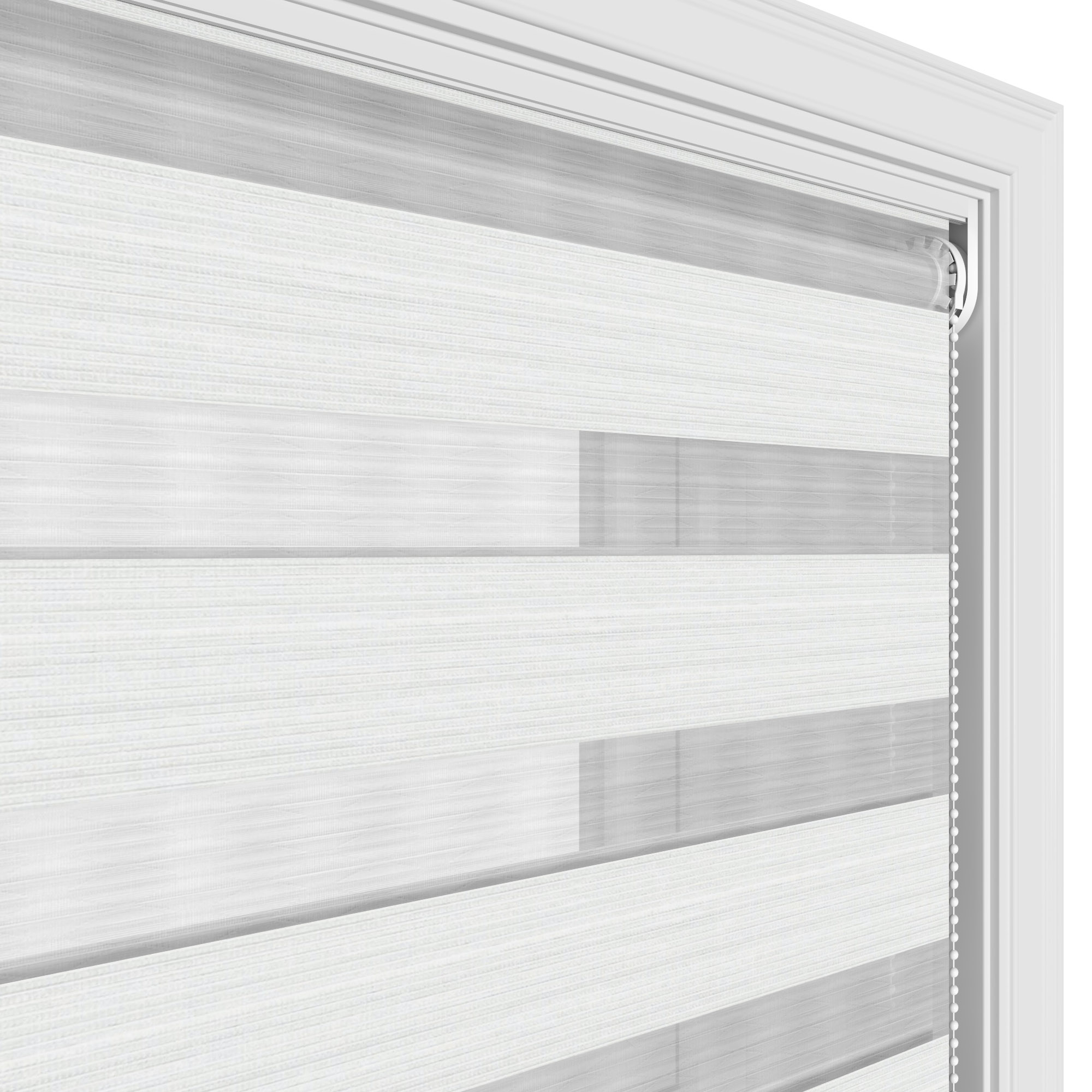 Day and night blinds, also known as Vision blinds, are unique to others in that they have two layers of fabric that move simultaneously. This allows for precise light control and additional privacy whilst maintaining a view to the outside.