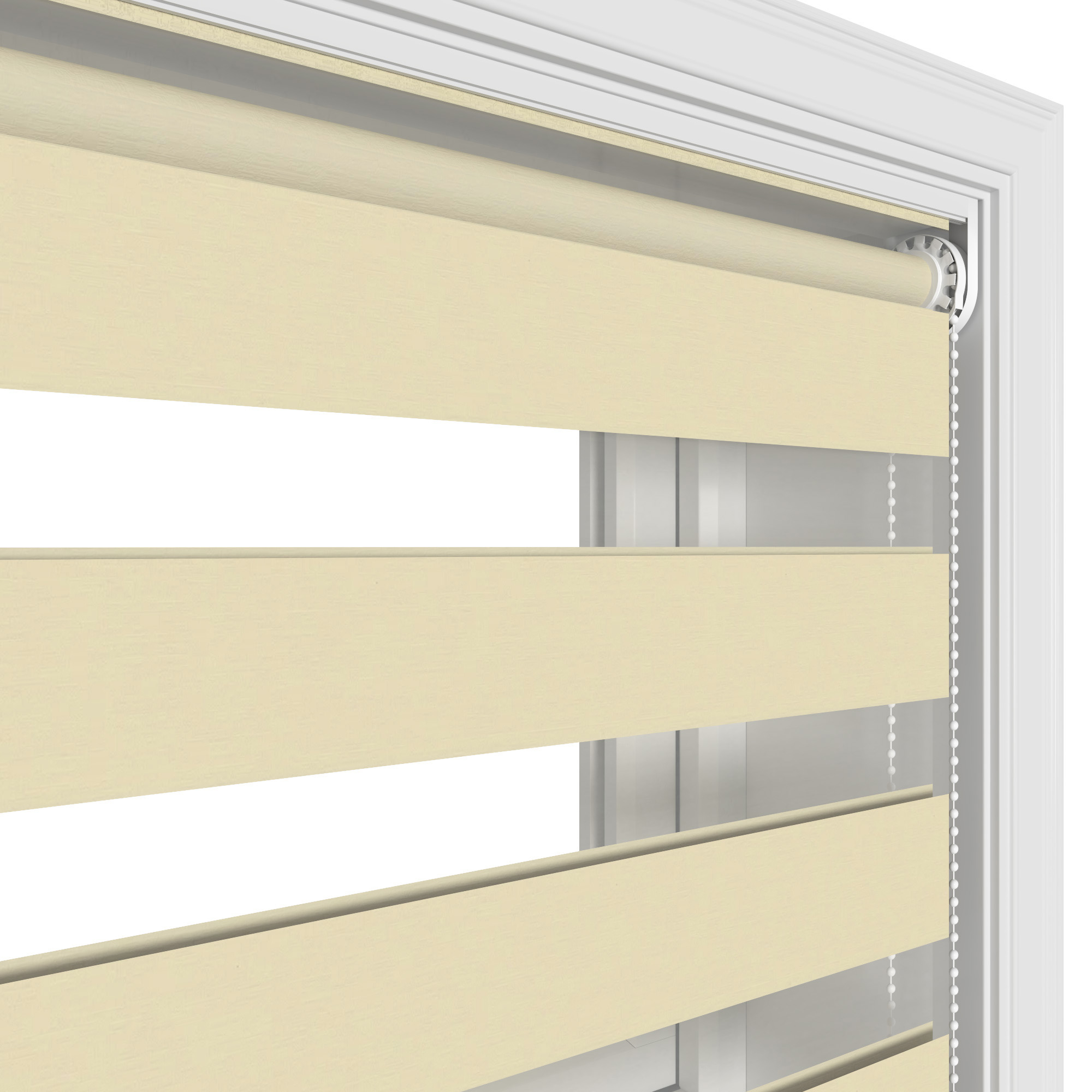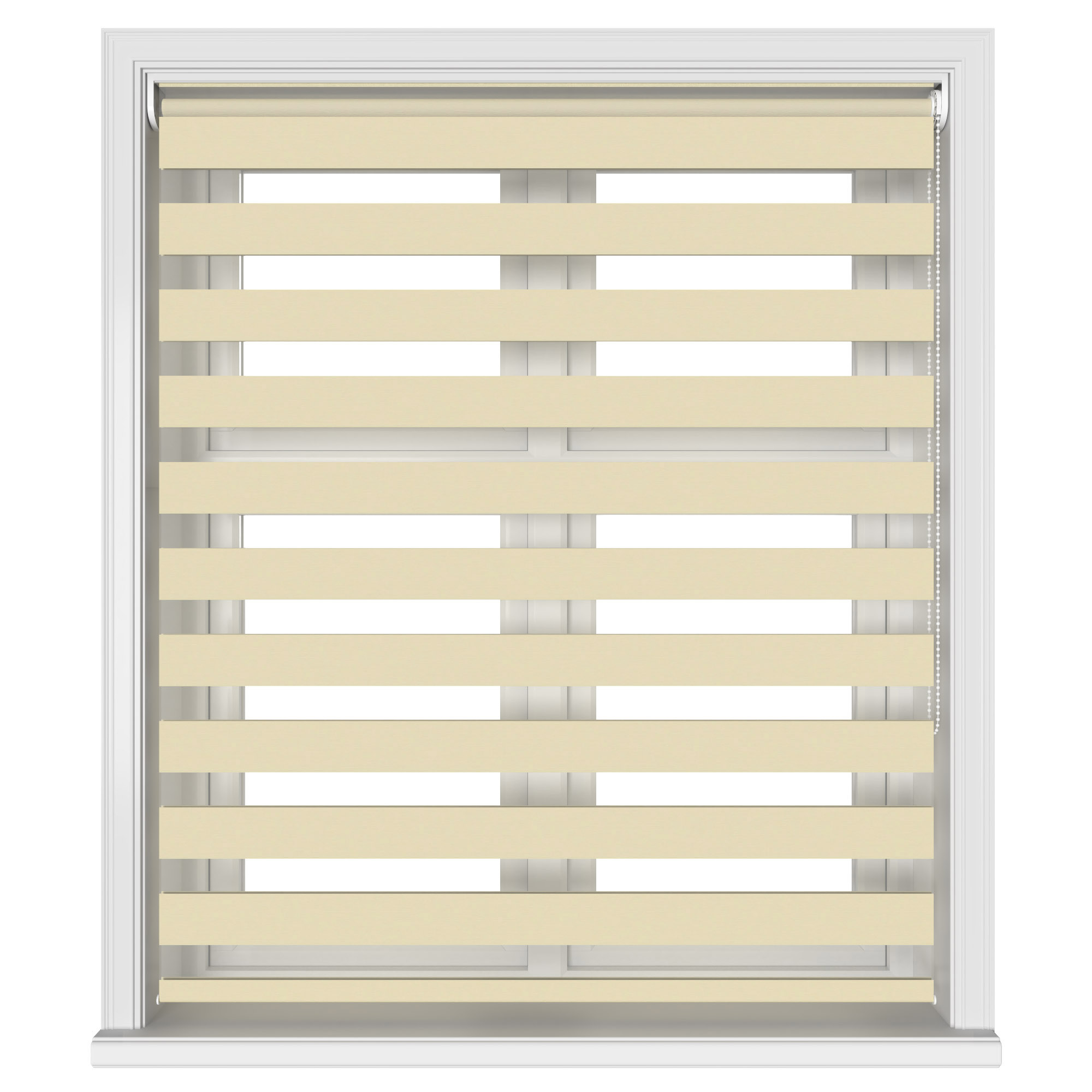 Day and night blinds, also known as Vision blinds, are unique to others in that they have two layers of fabric that move simultaneously. This allows for precise light control and additional privacy whilst maintaining a view to the outside.