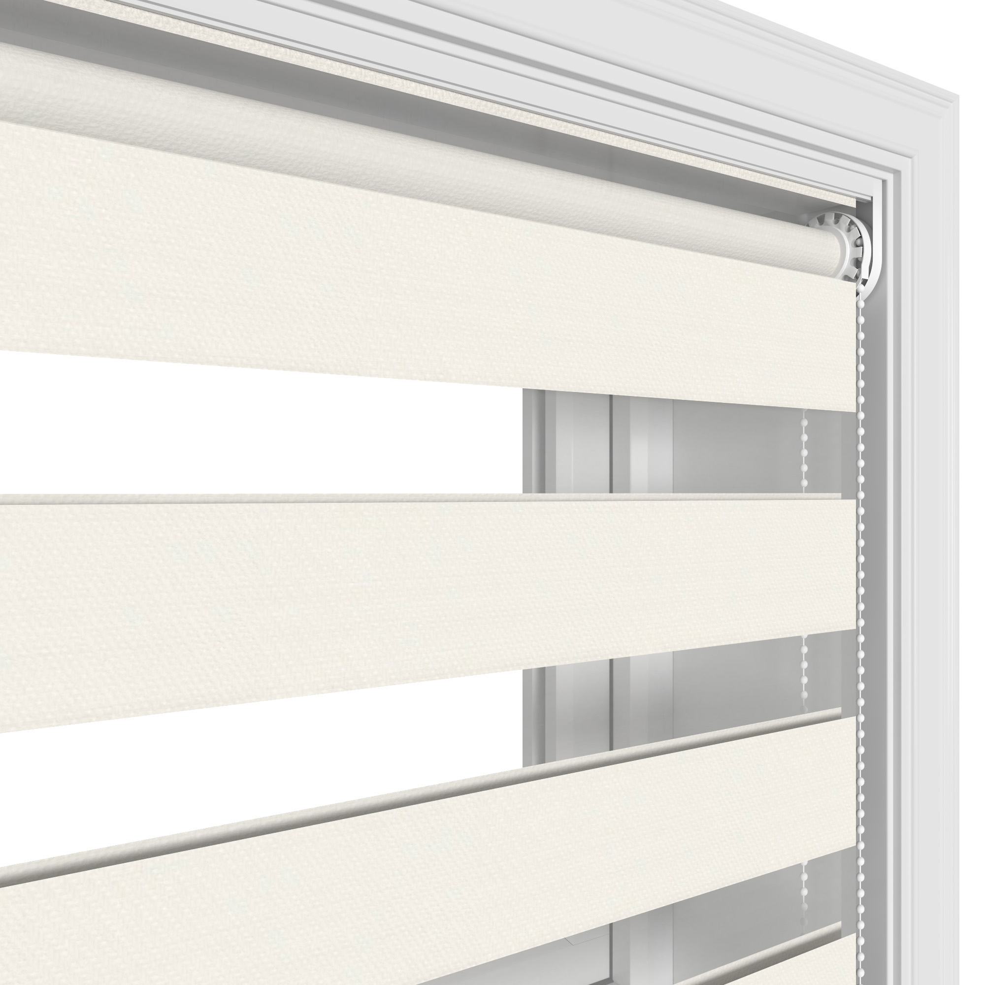 Day and night blinds, also known as Vision blinds, are unique to others in that they have two layers of fabric that move simultaneously. This allows for precise light control and additional privacy whilst maintaining a view to the outside.