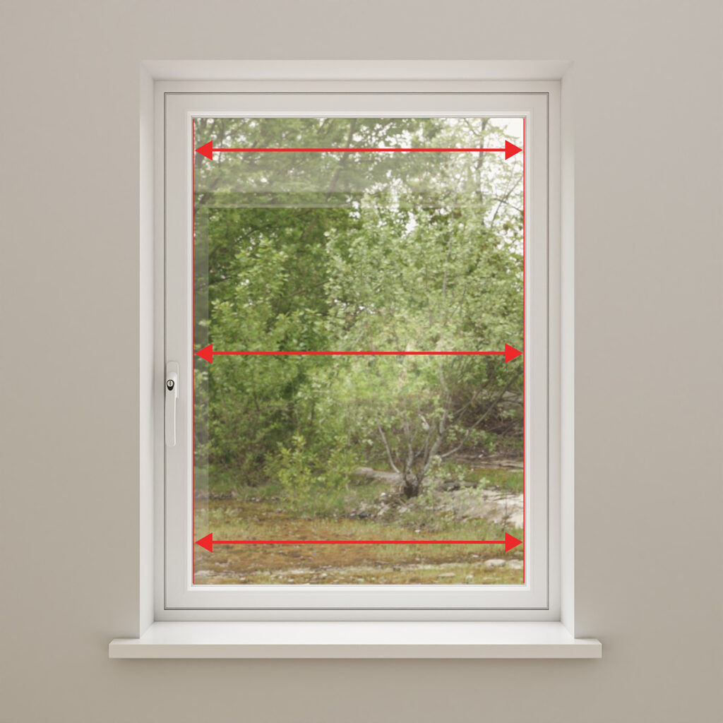 Measure the width of the pane of glass (not including the beading or window frame) using a steel tape measure. Take the measurement in at least three places where you would like to install your blind. You will use the smallest of these measurements as your width measurement when ordering your blinds.