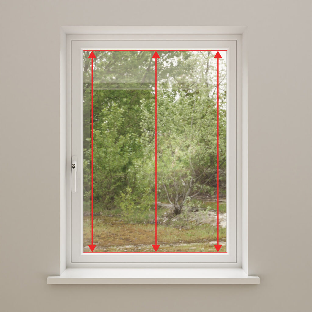 Measure the height of the pane of glass (not including the beading or window frame) using a tape measure. Take the measurement in at least three places where you would like to install your blind. You will use the smallest of these measurements as your drop measurement when ordering your blinds.