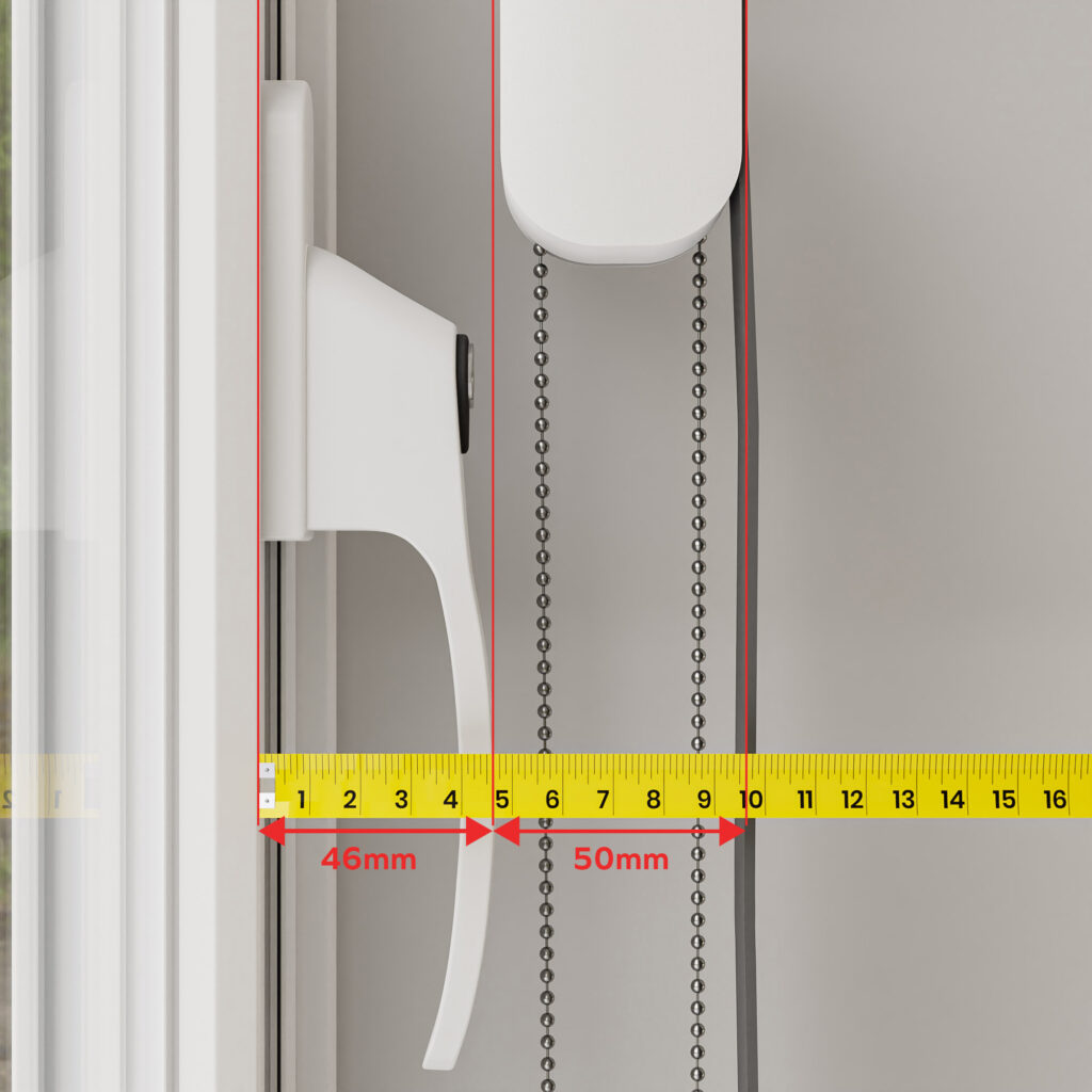 Depth check – To allow sufficient room for your blind to operate, it’s important that there is a minimum of 50mm depth clearance between the farthest point of any obstruction and the front of the recess.