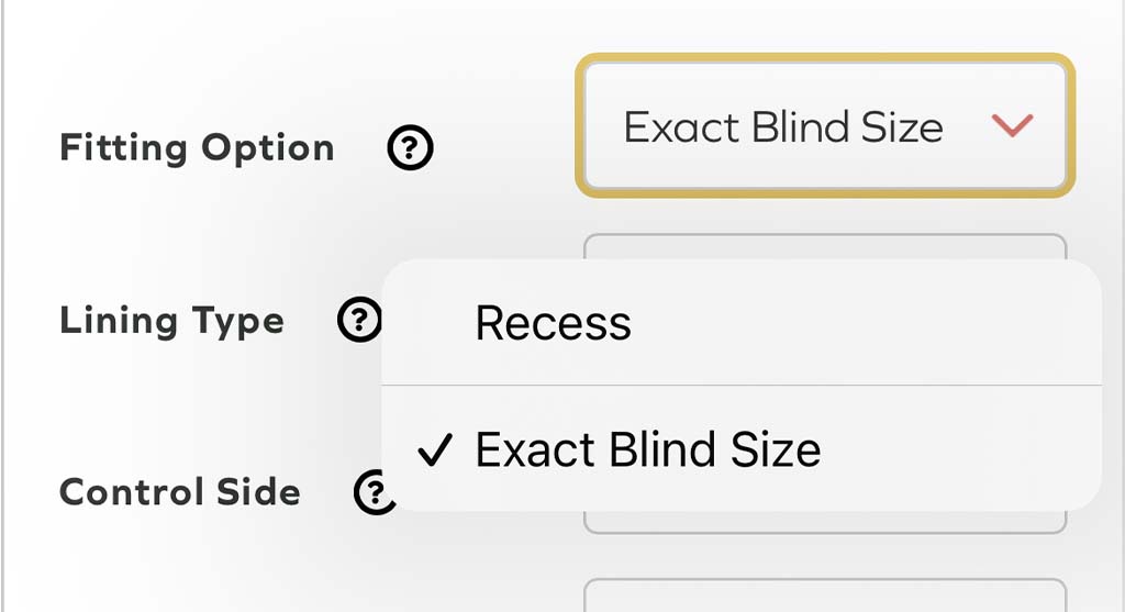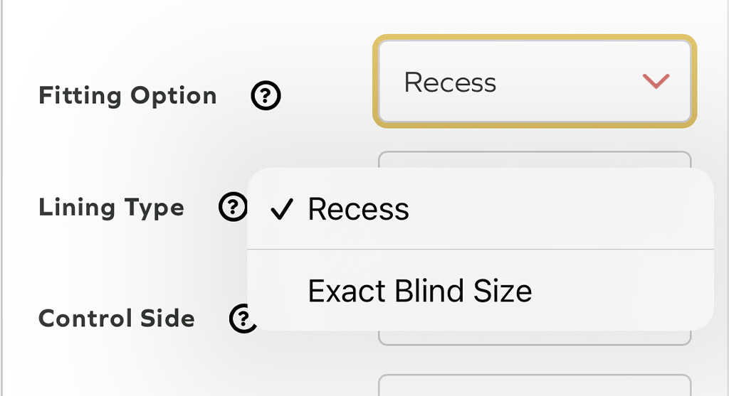 To determine the width for your blind, measure the recess at three points. Use the smallest measurement when placing your order.