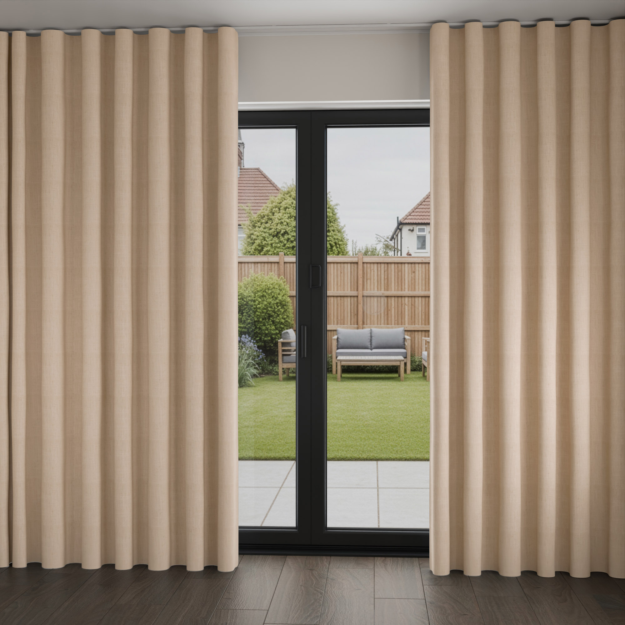 - We will deduct 10mm from the width and 15mm from the drop of the curtain and track to fit within the space.
