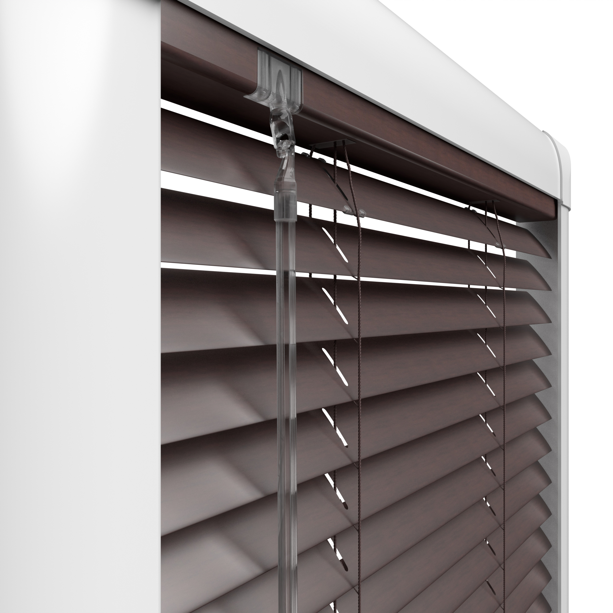 Perfect Fit blinds seamlessly clip into your window’s beading, ensuring effortless installation. Our Walnut Perfect Fit metal blinds offer a versatile touch to any room. Built from sturdy 25mm metal slats, they provide superb light management and privacy while maintaining a sleek modern aesthetic.
