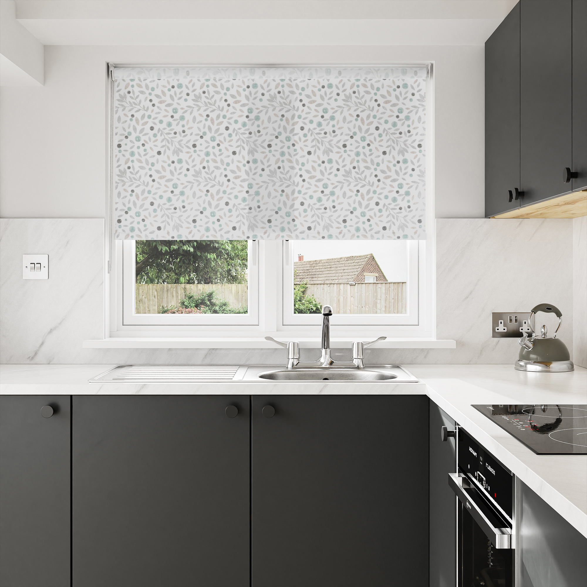 With its rich hue, our White/ Blue light-filtering roller blind provides a beautiful contrast to neutral tones like white and cream, adding extra character to any indoor space.