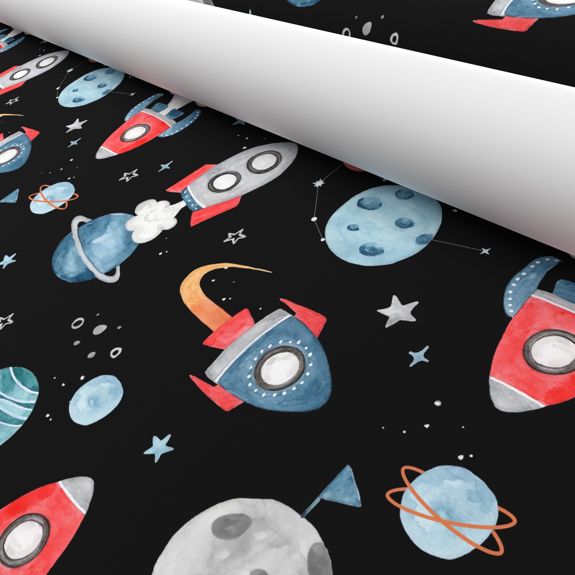 Space Rockets Black Blackout Roller Blind