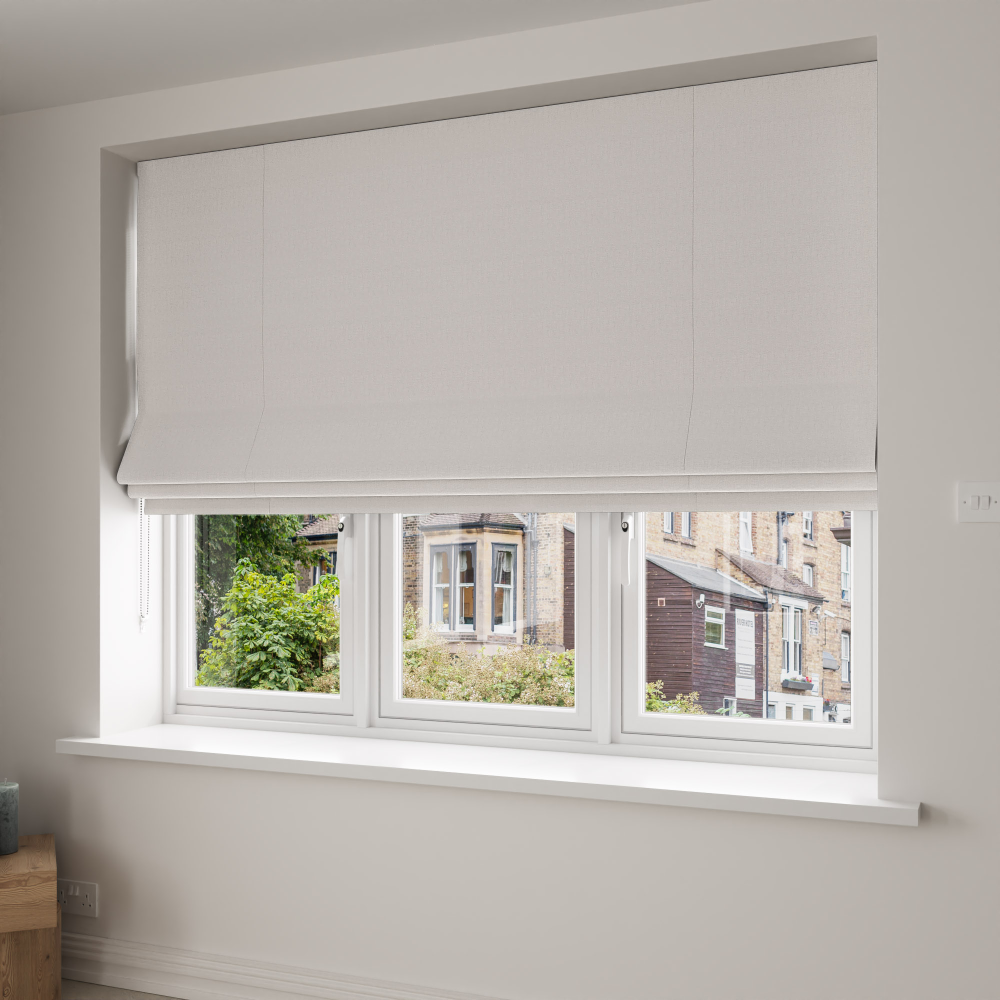 Roman blinds can be fitted inside the window recess or outside of it, so you’ll need to decide this before measuring up. Remember to allow for the stacking height when measuring, and follow our measuring guide online.
