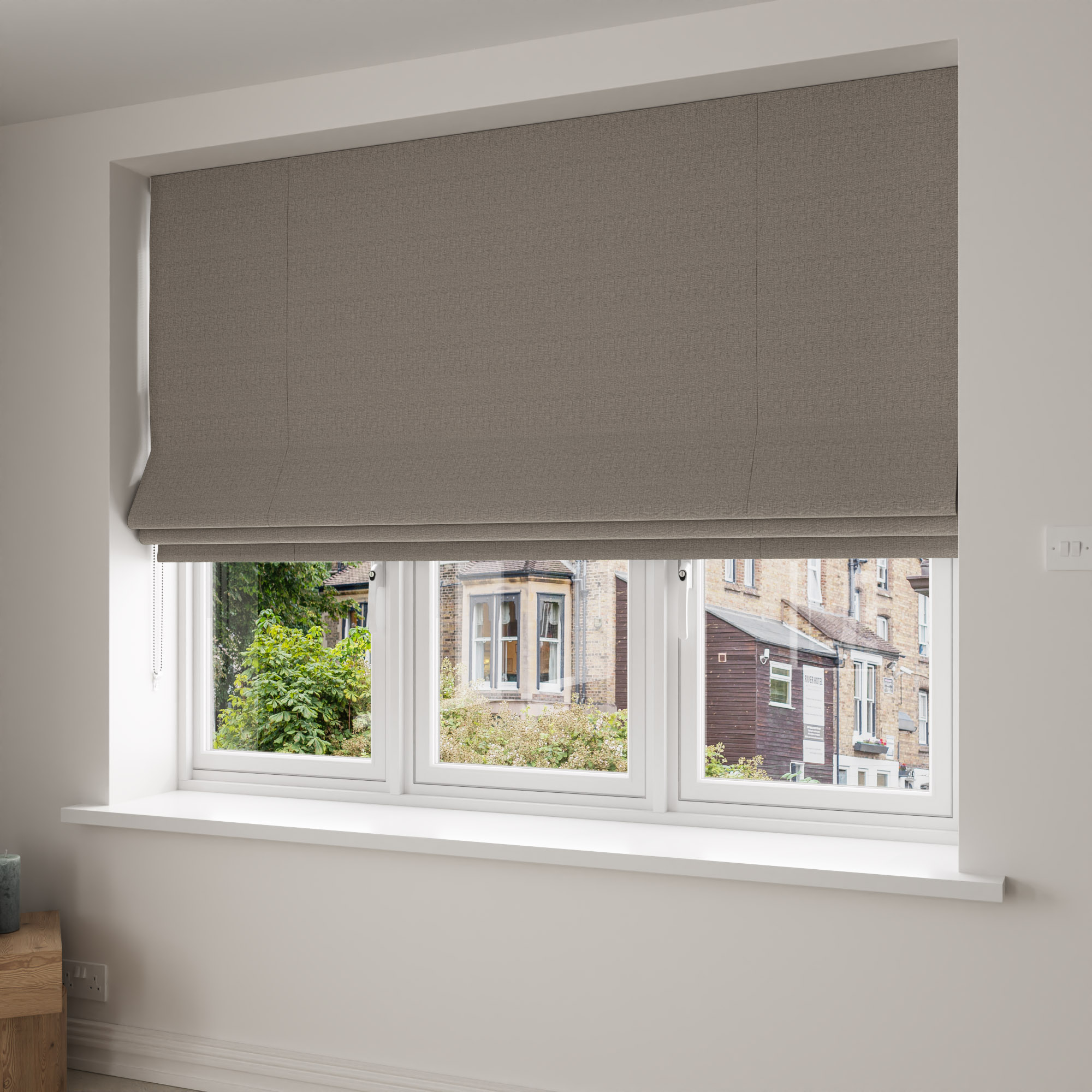 Roman blinds can be fitted inside the window recess or outside of it, so you’ll need to decide this before measuring up. Remember to allow for the stacking height when measuring, and follow our measuring guide online.