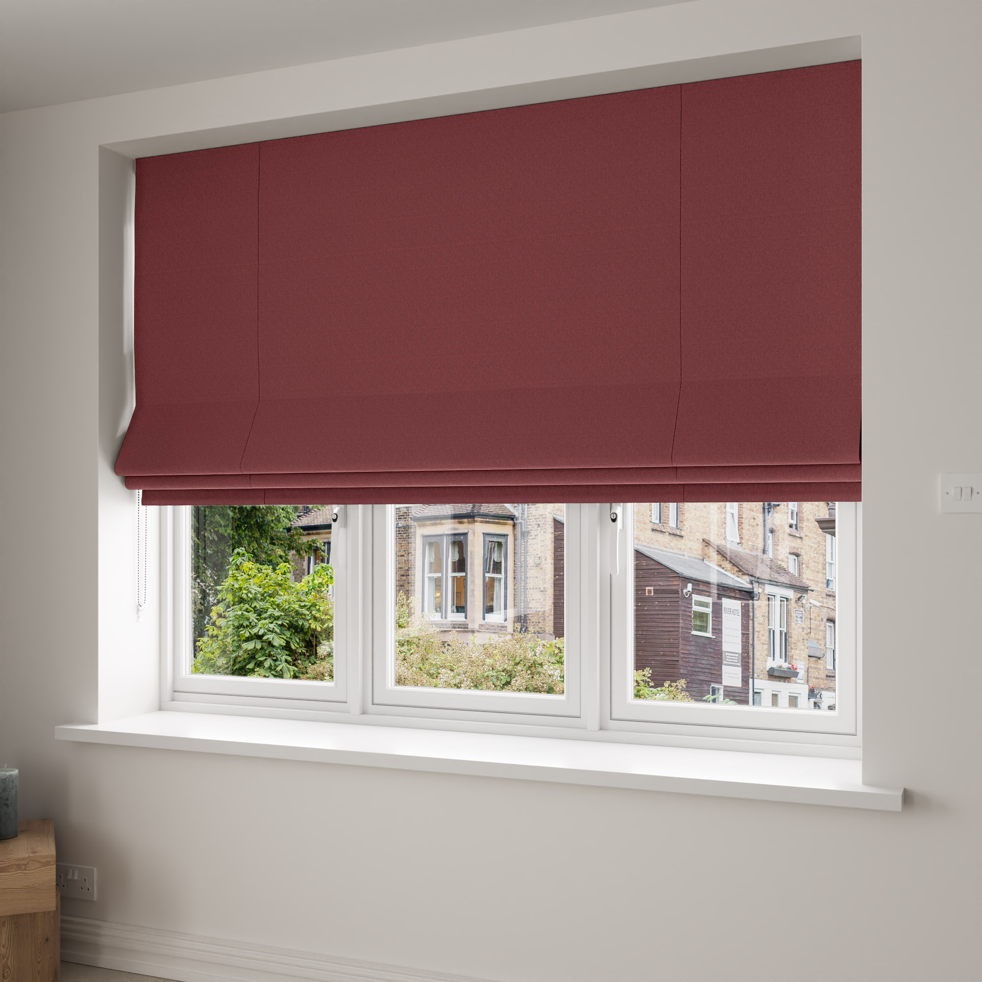 Roman blinds can be fitted inside the window recess or outside of it, so you’ll need to decide this before measuring up. Remember to allow for the stacking height when measuring, and follow our measuring guide online.