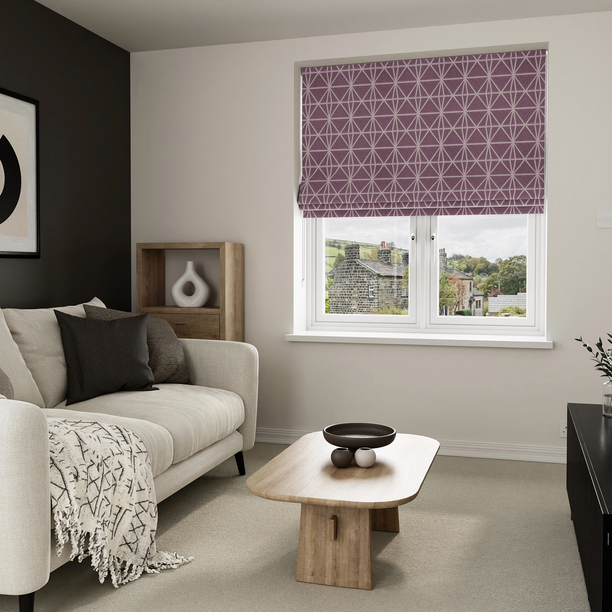 Whether you desire an attractive plain fabric or a modern pattern, Prilly Aubergine Roman blinds infuse your windows with an air of elegant grace, making your home a sanctuary of chic and refinement. Delight in the timeless allure of Roman blinds and raise the atmosphere of your living space to new heights.