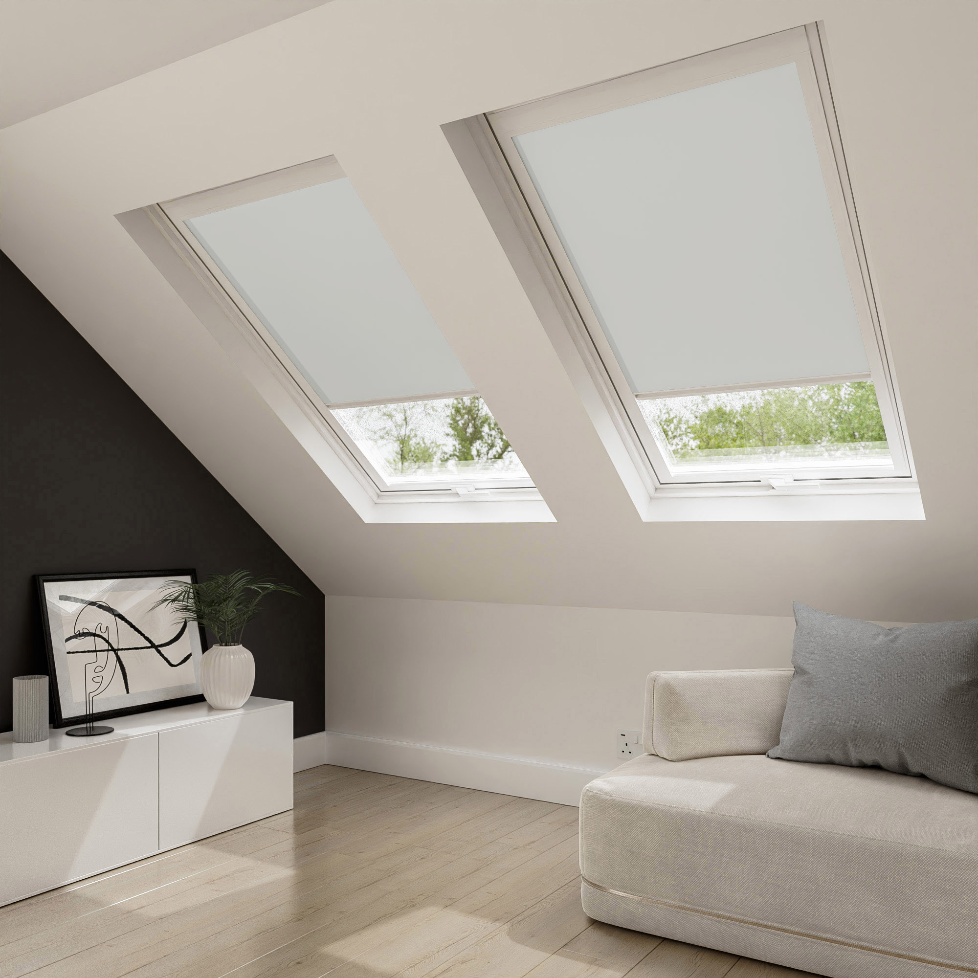 Create a calm and harmonious atmosphere with our White roof blind, designed to complement a range of neutral room colours and interior styles.