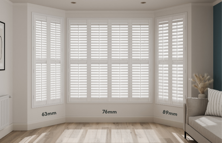 Louvres typically come in 63mm, 76mm and 89mm.