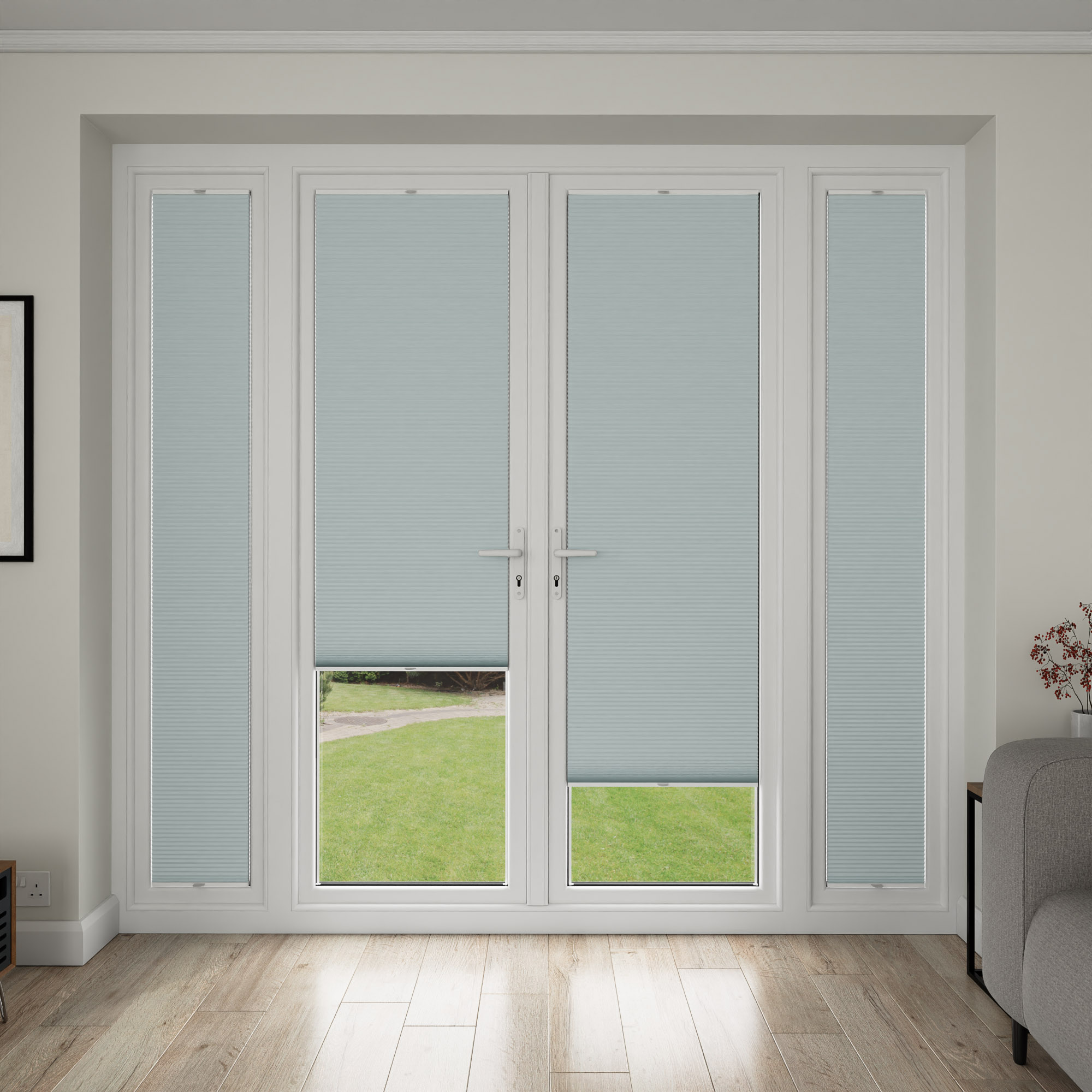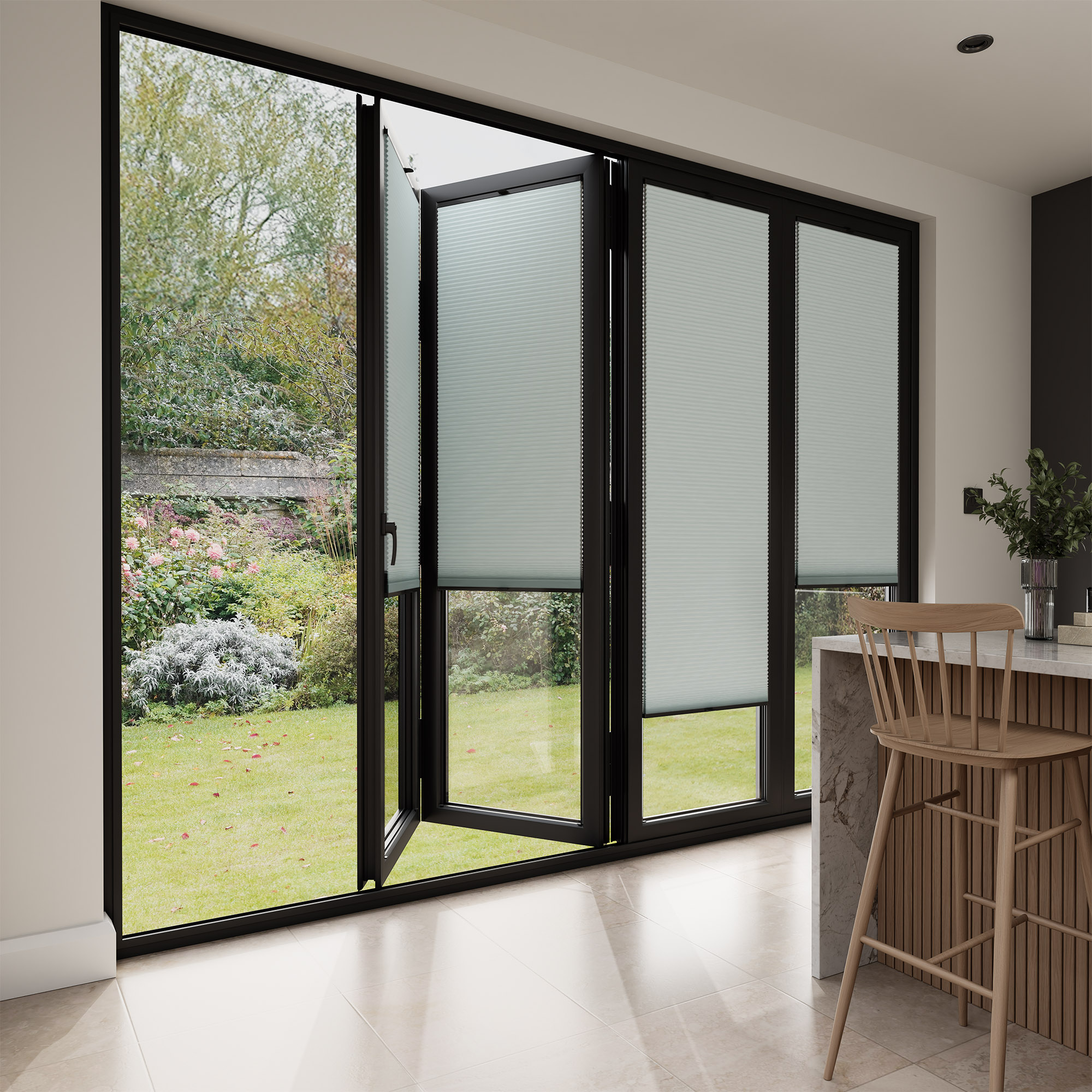 Please note that our StickFit blinds project 35mm from the glass to the front of the folded down operating handle. The is particularly important to note for bi-fold doors and their operation.