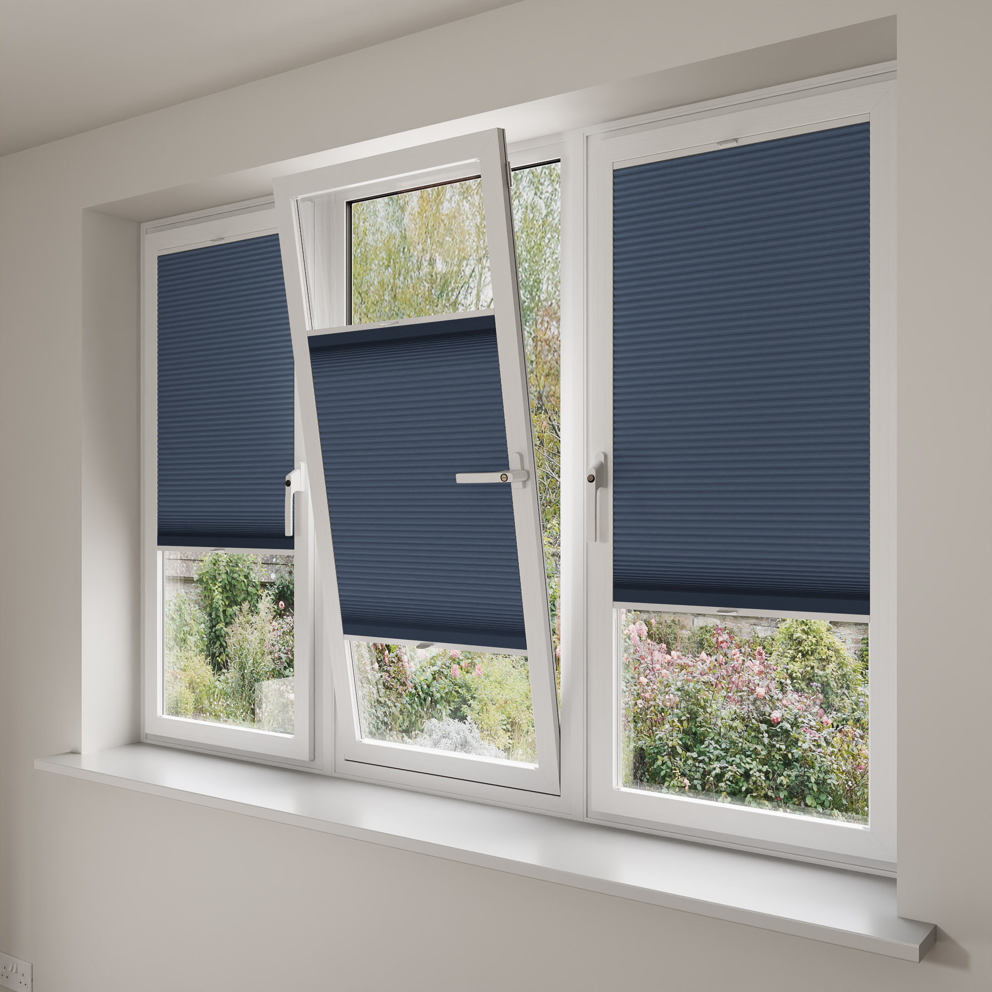 Please note, on StickFit Blinds there may be slight light leakage around the material and panels.