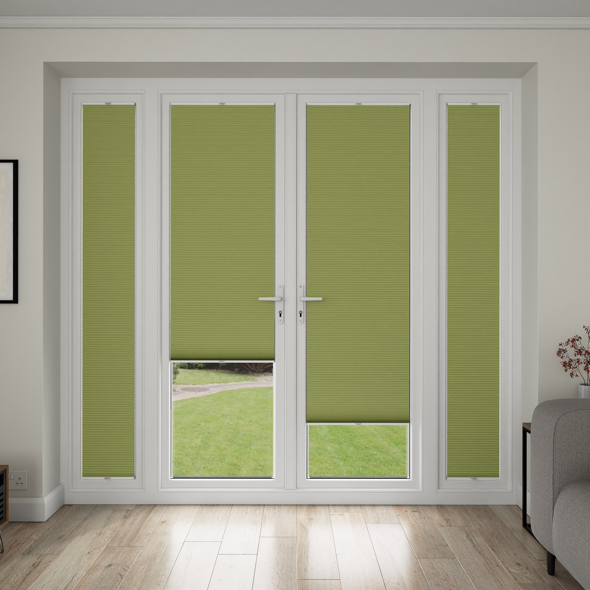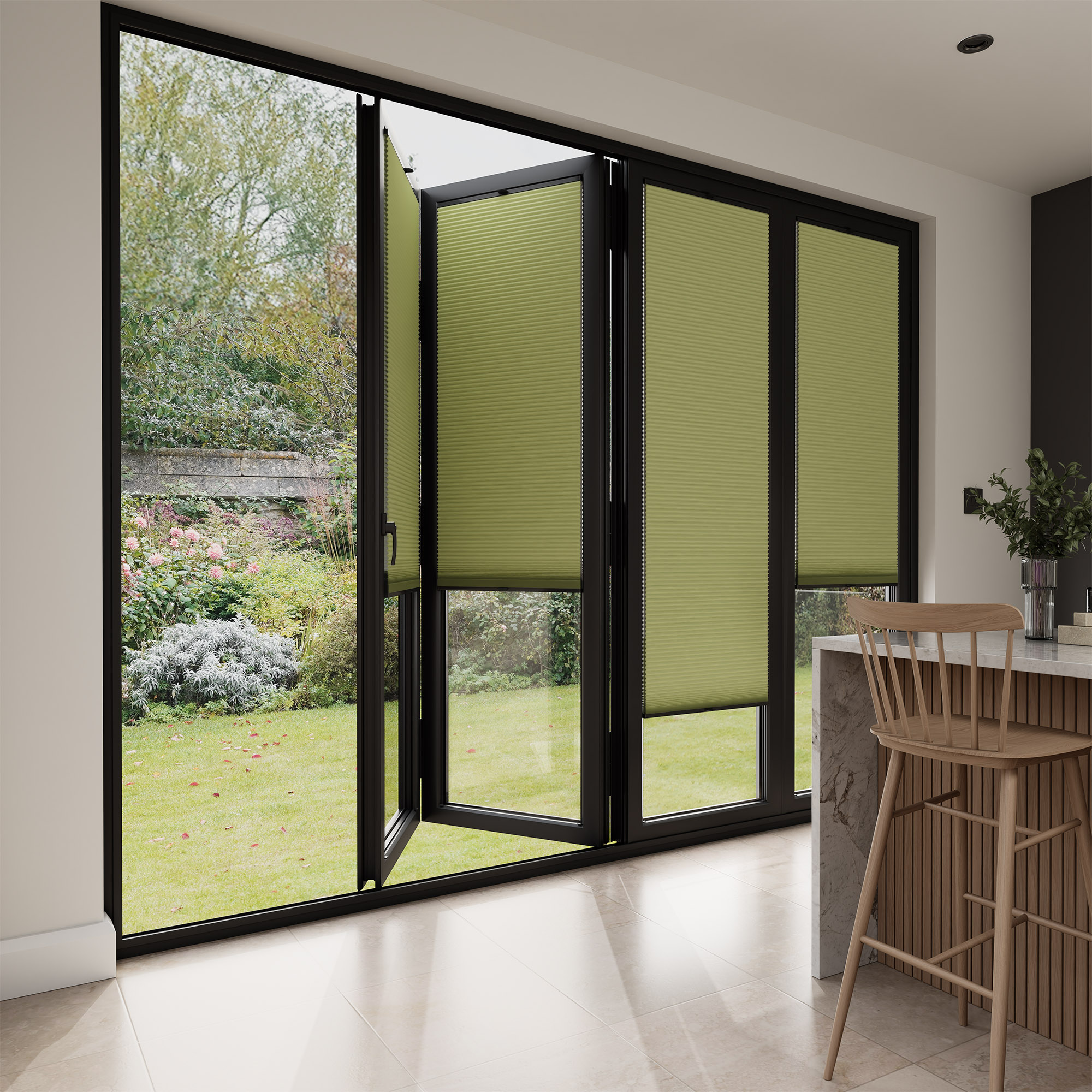 Please note that our StickFit blinds project 35mm from the glass to the front of the folded down operating handle. The is particularly important to note for bi-fold doors and their operation.