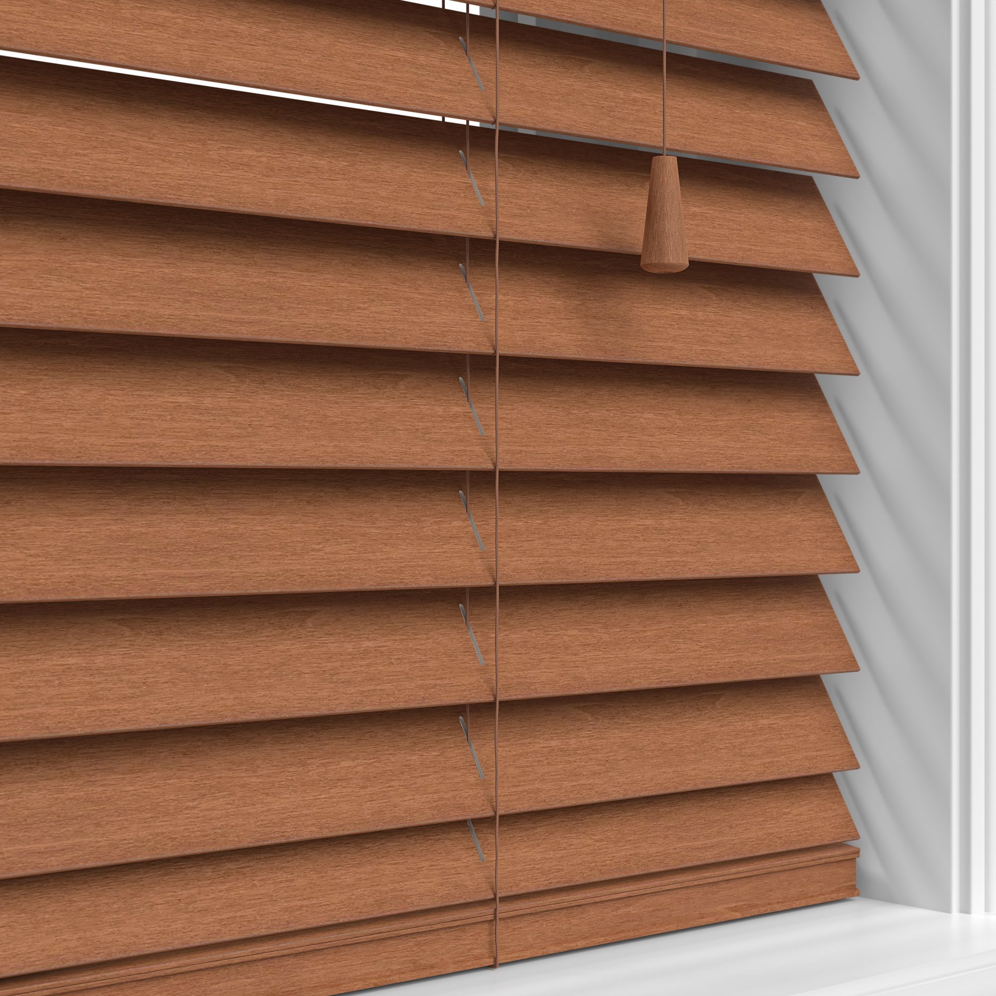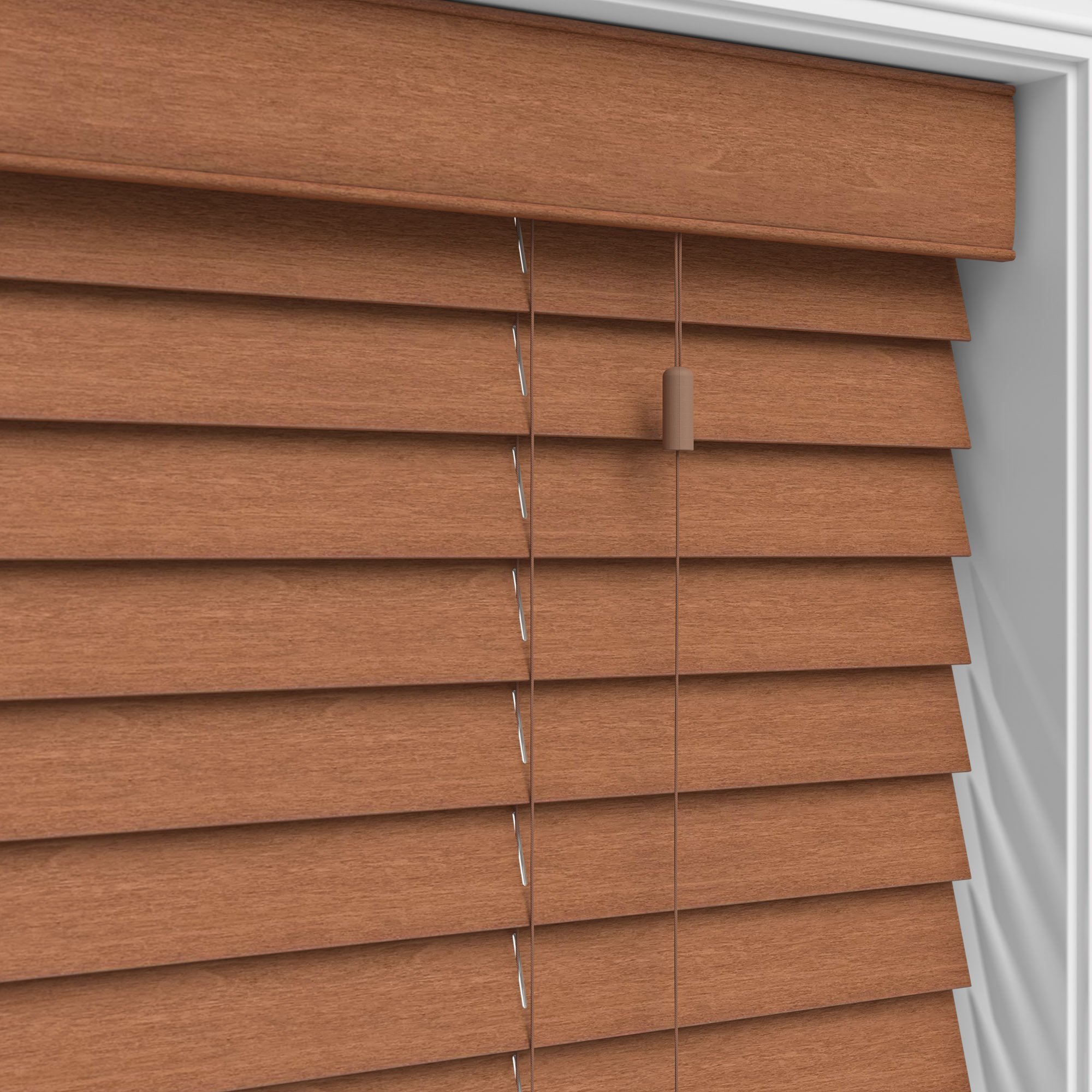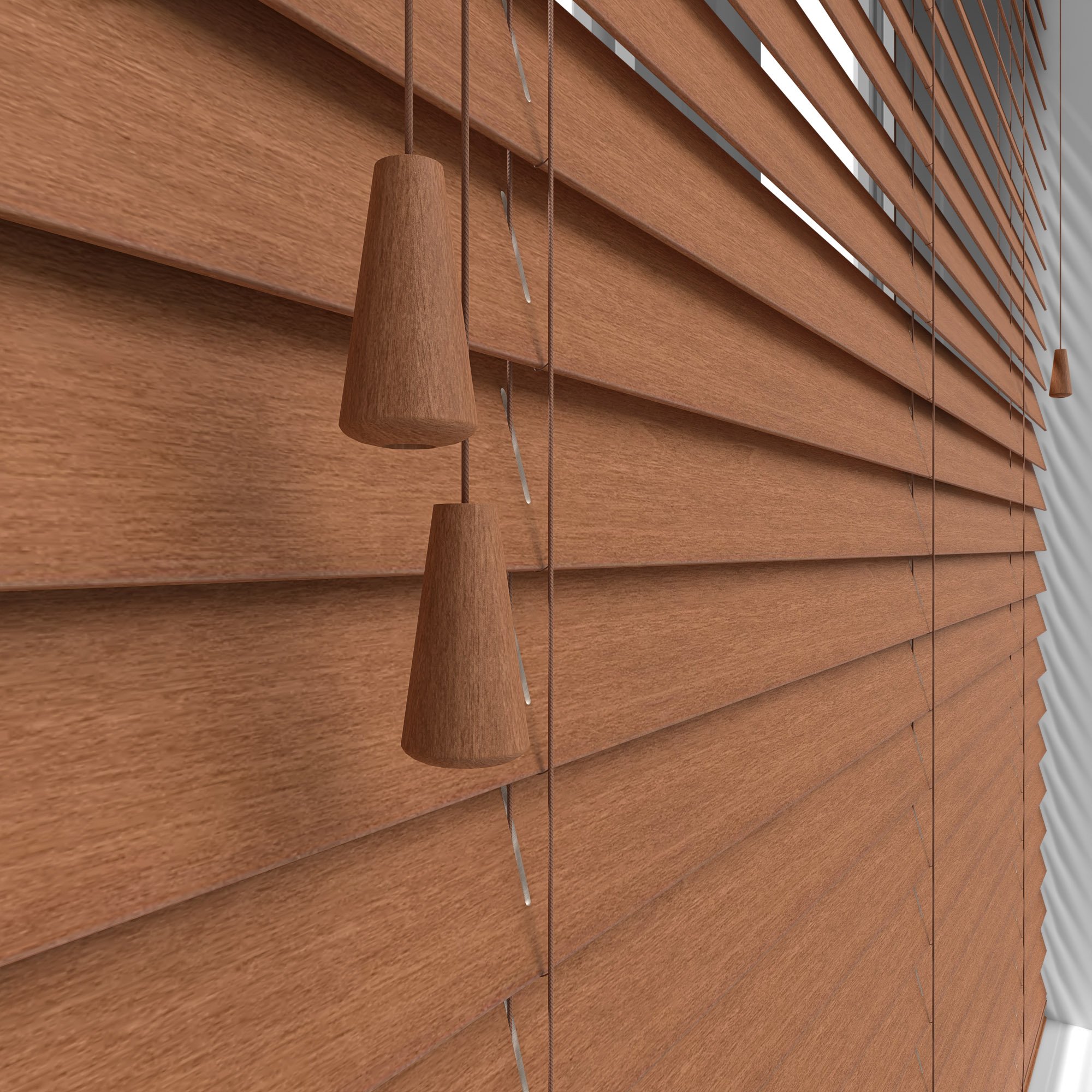 Faux Wood are manufactured from an extremely durable PVC plastic, which in turn brings benefits of being waterproof and very easy to clean. Real Wood blinds are, as you can probably guess, made from 100% real basswood! Real Wood blinds come in fantastic colours, some oozing with class with their deep grained texture.