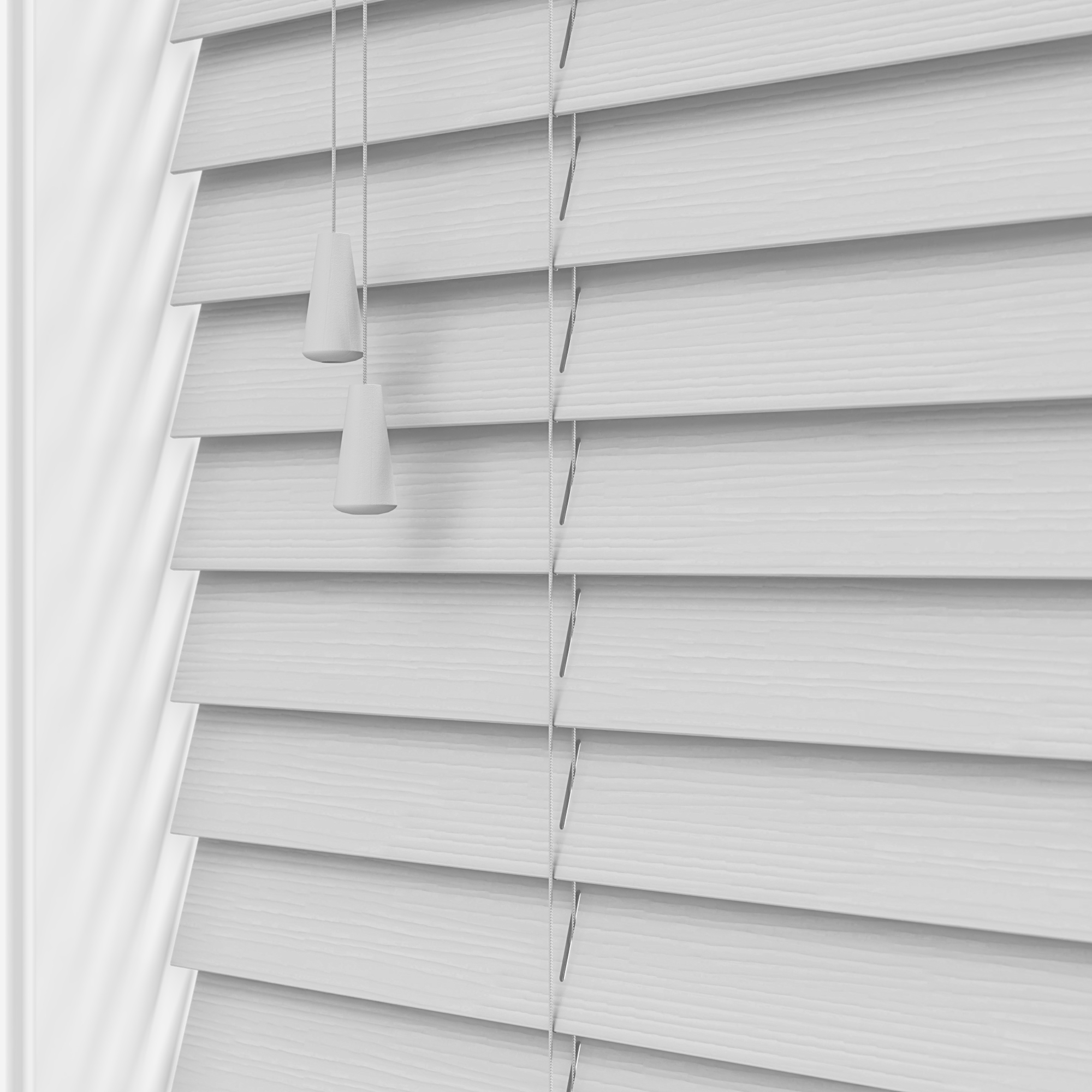 Elevate the character and comfort of your home with this wood Venetian blind, which perfectly contrasts softer tones like white and cream.