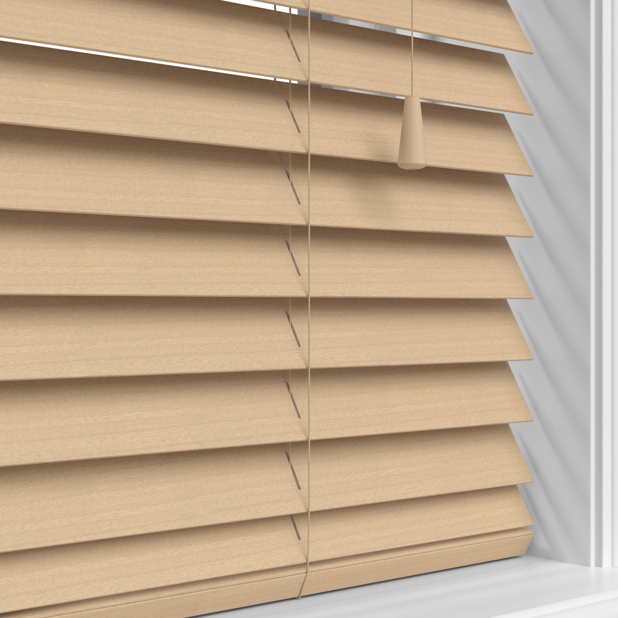 Faux Wood are manufactured from an extremely durable PVC plastic, which in turn brings benefits of being waterproof and very easy to clean. Real Wood blinds are, as you can probably guess, made from 100% real basswood! Real Wood blinds come in fantastic colours, some oozing with class with their deep grained texture.